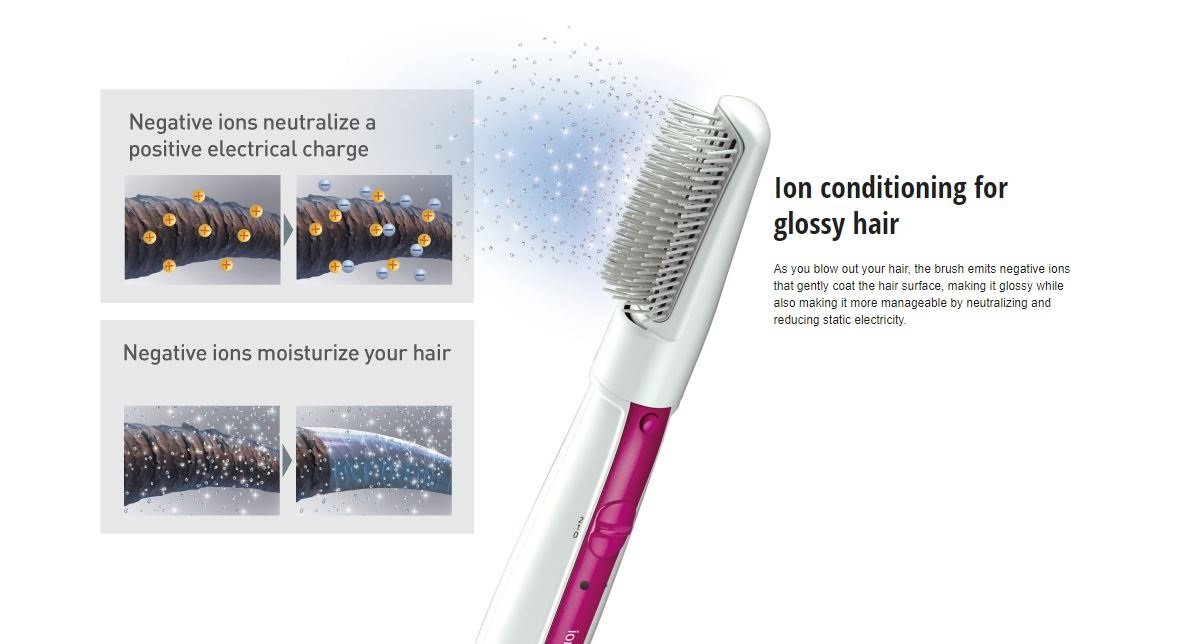 Feature: Ion conditioning for glossy hair / Blow brush for straightening
